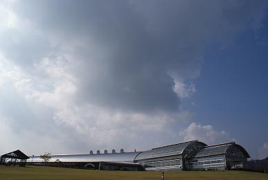 なが~~~い建物と空に広がる雲・・・